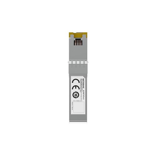 NETGEAR® 10GBASE-T SFP+ Transceiver (AXM765v2) delivers 10G copper connectivity with CAT6a or CAT7 cabling up to 80 meters (262.5 feet) when inserted in a switch SFP+ fiber module slot. The AXM765v2 fits into SFP+ or SFP28 interfaces of M4250, M4300, and M4500 Managed Switches.