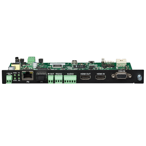 Any source can be sent to one or more displays by routing through layer-2 / layer-3 switches utilizing standard Cat5e cable. The NMX-ENC-N2312 includes standard features like input scaling, bi-directional serial, IR, embedded 7.1 audio, and KVMover- IP extension. It also comes in a card version compatible with SVSI's N9206 card cage for high-density applications.