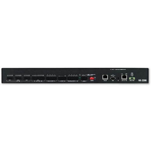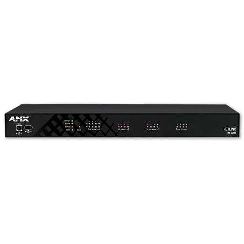 The NX-2200 / NetLinx® NX Integrated Controller is a programmable network appliance specifically designed to control AV and building technology using multiple analog and digital formats. The NX-2200 provides a scalable platform for the future by combining high performance, backward compatibility and extensive network security features. The NX-2200 is ideal for control and automation of medium-sized rooms and multi-room applications, as it includes more ports and security capabilities than the NX-1200.