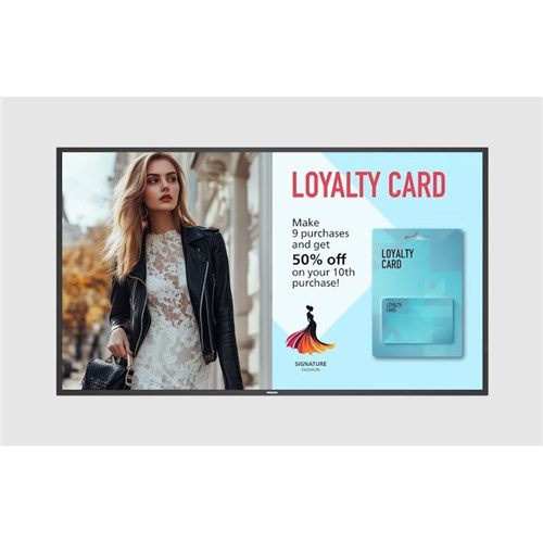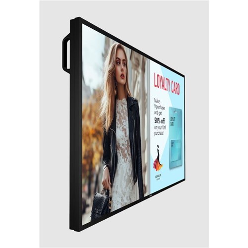 Install in portrait or landscape orientations, with size variants including 43”, 50”, 55” and 65” to suit a range of installation purposes.