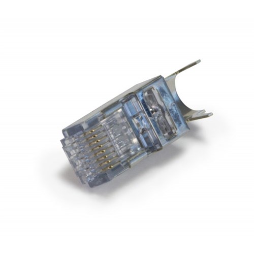 The ezEX-RJ45 connectors feature a unique integrated Hi-Lo stagger load bar and allows ‘big’ conductors to pass through the front end of the connector making it easy to verify the wiring sequence before terminating. These connectors are used with Cat5e/6/6A cabling and is ecommended for PoE/PoE+ and Data applications. The termination tool for these connectors is the EXO Crimp Frame and EXO-EX Die (100061C).