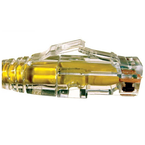 The innovative Snag Proof Strain Relief is designed specifically to be crimped with the EZ-RJ45® and ezEX-RJ45® plugs. The primary strain relief of the plug locks the snag proof strain relief in place so they will not pull off, creating one, integral assembly. Once crimped, this design allows the plug's primary strain relief to relax slightly, preventing the cable pairs from being over compressed. This decrease in stress contributes to achieving peak performance. The tab on the strain relief is designed to extend over the plug's locking tab, making it snag proof when administering patch cords.