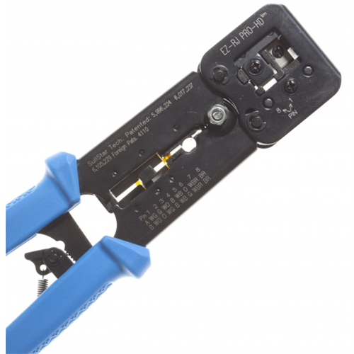 The EZ-RJPRO™ HD Crimp Tool is designed for the professional installer providing a ratcheted, high leverage, ultra stable platform for consistent, repeatable terminations. This heavy duty tool is the perfect solution when working with high performance, larger OD cables that are tougher to terminate due to larger wire gauges, thicker, harder insulation on the conductors and pair separating splines. Not only will you overcome these connectivity obstacles but you can be assured that every termination will meet FCC specifications. Compatible with all EZ-RJ45® and EZ-RJ12/11 connectors as well as all standard modular plugs, except AMP.