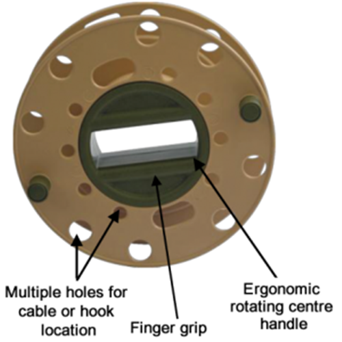 The Ruslyn Pack Reel® has been specifically designed for the dismounted soldier as a handheld lightweight but rugged small reel able to be carried during deployment. This small reel was specifically designed in cooperation with defence to function as a: