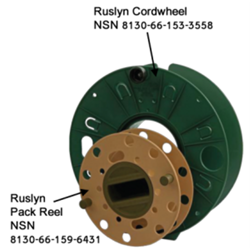 The Ruslyn Pack Reel is NATO codified with NATO stock number (NSN) 8130/661596431. Manufacture part number AUS004754RPR-85.