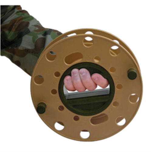 The Ruslyn Pack Reel® is designed to be carried by dismounted personnel. This small reel is used by Army, Navy and Air Force including Combat Engineers, Search, EOD, CIED, Sigs, Special Forces, Clearance Divers and Aerospace. The Pack Reel is a rugged lightweight ergonomic hand held mini reel that can be operated by a gloved hand in any conditions to deploy hook and line, firing cable, detonator cord, comms cable, rope, wire and cord. The Ruslyn Pack Reel is a mini reel used by the military and can be attached to a soldiers webbing or pack carried. The Ruslyn Pack reel is an extremely light mini reel with no metallic components. As a small reel it is rugged and able to be used with a gloved hand in sub zero temperatures. The Ruslyn Pack Reel is also available in black and used as an anchor rope reel around the world. It is well liked as a mini rope reel and is used in fishing as a kayak small anchor rope reel. Used in many countries around the world the Ruslyn Pack Reel is proudly designed and manufactured in Australia.