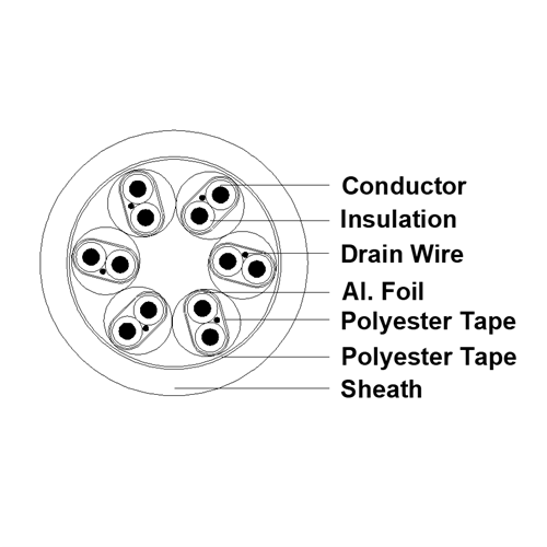 (7/0.2TC x 1P + PE + Drain Wire + Al. Foil + Polyester Tape) x 6C + Polyester Tape + PVC Sheath Φ11.2mm