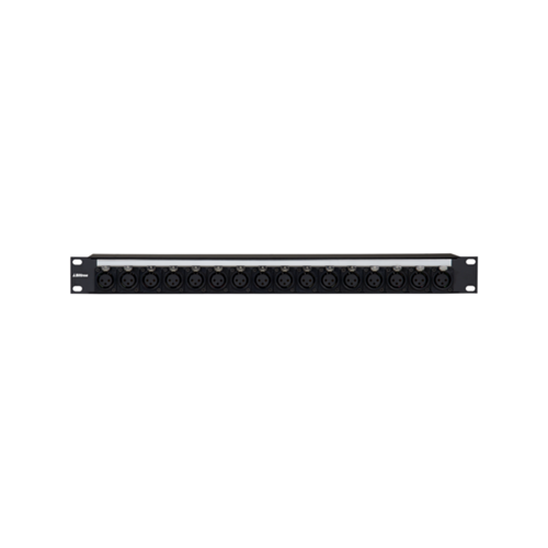 Bittree® Bulkhead Patch Panel, XLR to E3, 1x16, 1 RUProduct Features:• Bittree® XLR to E3 bulkhead patch panel in 1 RU with 1x16 connector configuration• Panels come pre-populated with 16 female XLR to E3 connector modules• Digital AES wire used for internal wiring• Circuit paths are isolated from the chassis• 1-16 right-to-left numbering on rear panel for easy circuit identification• 1 x DS380-10 designation strip• Mating hardware included: - 16 x E3M connector housings (3-pin male) - 48 x EPIN crimp contacts (gold-plated)• 3" (7.62 cm) deep removable rear lacing bar included - Alternative 6" (15.24 cm) deep lacing bar available; please make a request at checkoutPanel Features:• Formed aluminum front panel with a durable black powder-coat finish• Two piece fully enclosed "tub" style chassis, 3" (7.62 cm) deep• Top and sides can be removed easily for internal customization