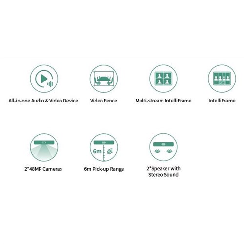 SmartVision 40 has a 6-meter voice pickup range, 4-meter quality voice pickup range and built-in stereo speakers, 3-meter full-duplex technology, and 8x long-range pickup microphones. The intelligent noise reduction technology provides a good audio experience. In addition, it can support 2 additional expansion microphones, that can cover a large conference room.