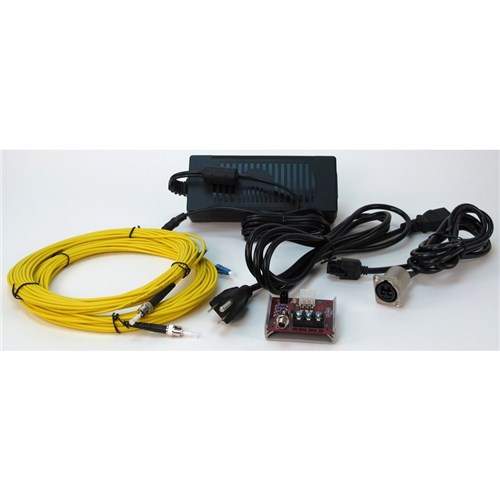 For use with Live-Link Jr. applications where camera end powering using hybrid fiber/copper cable assemblies is desired. Includes pre-wired opticalCON DUO bulkhead connector, LC-ST fiber-optic jumpers, power interface board, and 48 V, 2.5 A output/universal input (100-240 V, 50/60 Hz) power supply.