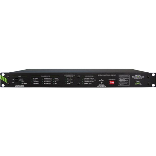 Live-Link™ Jr. is a highly-integrated camera extender system optimized for electronic news gathering (ENG), uplink truck, and specialized broadcast applications. The portable camera end unit and rack-mounted truck end unit provide all the resources needed for a single-camera live event. Linked using just two single-mode optical fibers, the same excellent performance will be supplied whether the units are hundreds of feet or miles apart. Notable features of the Live-Link Jr. system include performance flexibility, support for high-quality on-air (program), talent cue (IFB) and intercom audio, and ease of use.