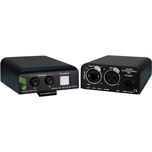 Optimized for broadcast sports and live entertainment events, eSports, news-gathering, and streaming broadcast applications, the Model 381 allows incredibly simple deployment while maintaining "pro" audio quality and an intuitive user experience. With just a Power-over-Ethernet (PoE) connection, a dynamic or phantom-powered microphone, and a pair of headphones or an earpiece, the unit will be ready for "on-air" deployment. The STcontroller software application is used for configuring operating parameters including microphone preamplifier gain, P48 phantom power, headphone signal routing, sidetone operation, and talkback button action. The Model 381's audio quality is excellent, with low distortion, low noise, and high headroom. Careful circuit design and rugged components ensure long, reliable operation.