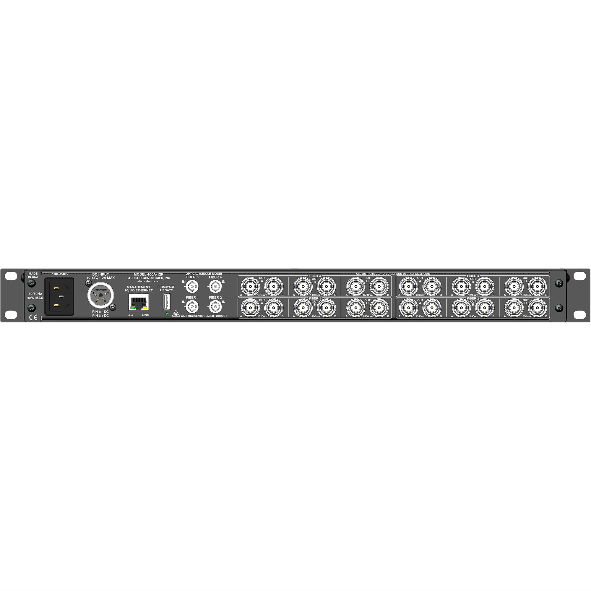 Model 400A-12R Provides optical-to-electrical (O2E) conversion of 4 single-mode optical inputs to 12 SD/HD/3G-SDI outputs. ST optical input connectors (4 total); BNC SDI output connectors (24 total). Single rack-space unit is powered by 100-240 V, 50/60 Hz or 10-18 Vdc.