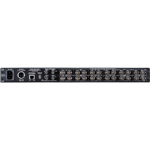 Model 400A-3T/9R Provides both electrical-to-optical (E2O) conversion (3 SD/HD/3G-SDI inputs to 1 single-mode optical output) and optical-to-electrical (O2E) conversion (3 single-mode optical inputs to 9 SD/HD/3G-SDI outputs). BNC SDI input, loop through, and output connectors (24 total); ST optical output and input connectors (4 total).