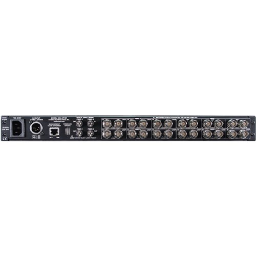 Model 400A-9T/3R Provides both electrical-to-optical (E2O) conversion (9 SD/HD/3G-SDI inputs to 3 single-mode optical outputs) and optical-to-electrical (O2E) conversion (1 single-mode optical input to 3 SD/HD/3G-SDI outputs). BNC SDI input, loop through, and output connectors (24 total); ST optical output and input connectors (4 total).