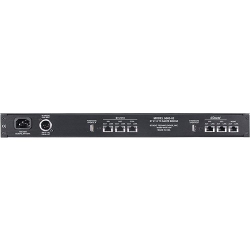 Two versions are available. The Model 5682-01 allows linking (in each direction) of up to 32 ST 2110-30 audio channels (at 48 kHz sample rate) with 32 Dante channels (at 44.1 or 48 kHz sample rate) or 16 Dante channels (at 88.2 or 96 kHz sample rate). The Model 5682-02 allows linking (in each direction) of up to 64 ST 2110-30 audio channels (at 48 kHz sample rate) with 64 Dante channels (at 44.1 or 48 kHz sample rate) or 32 Dante channels (at 88.2 or 96 kHz sample rate). This listing is for the Model 5682-02.