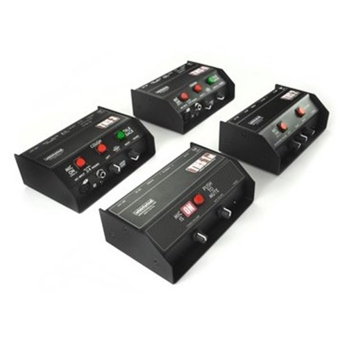 The THS 4 has both main and talkback microphone outputs. A latching Mic On/Off switch connects signal to the main mic output. The switch is illuminated red when the mic output is live. Two types of onboard condenser microphone power are available, enabling seamless switching when talkback is activated. A three way switch selects either phantom or "T" power and is recessed to avoid accidental turn off. A momentary Cough switch silences both the mic out and the talkback out when depressed. The momentary Talkback switch connects audio to the talkback output and mutes the mic out. The announcer’s microphone is sent through a preamp and line driver that deliver signal to the talkback output at line level. There is a level control for fine adjustment of the audio sent down the talkback line. The Talkback switch illuminates green when depressed.