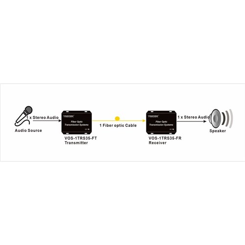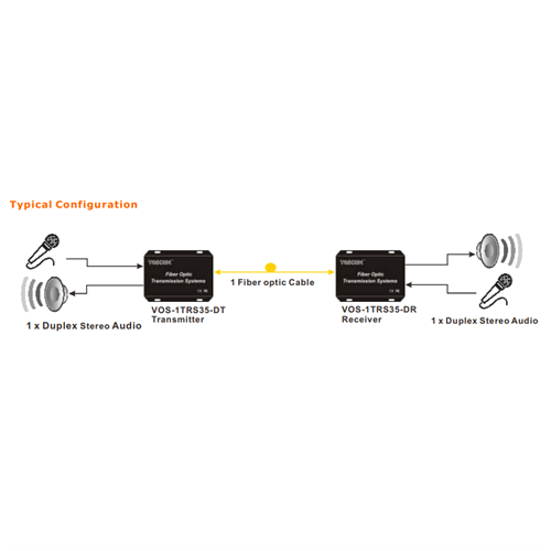 Fiber Optic Audio Transmitter & Receiver VOS-1TRS35-DT/R provides for the 1-Channel Duplex24-Bit Digitally Encoded Stereo Audio. Ideal for Broadcast /Studio, CCTV audio and Professional AV applications.