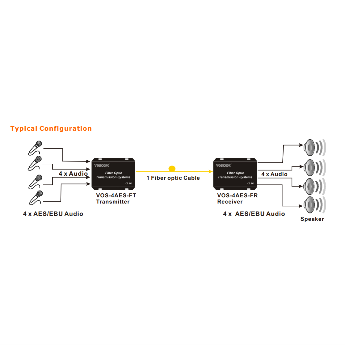 VOS-4AES-FT/R provides for the 4-Channel Simplex AES/EBU Digital Audio. Ideal for Broadcast /Studioand Professional AV applications.