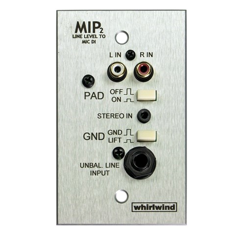 The Whirlwind MIPAI media input plates are active, dual input mixer plates designed to combine line and microphone input sources into a single line level balanced output that can be sent over long distances to remote audio processing equipment. Applications include gymnasiums, banquet halls, conference centers and others where local volume control is desired for the source material. Separate level controls are provided for each input and deliver enough gain to drive modern power amplifiers to full output.