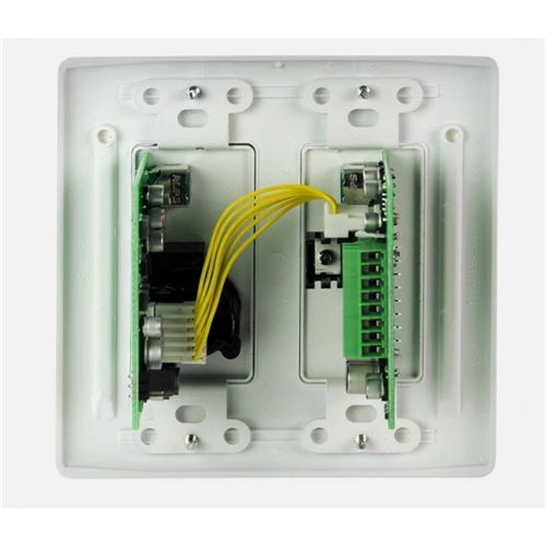 Up to three MIPAI plates can be daisy-chained together and powered from a single supply located in the equipment rack. Features include LED level indicators, a bass cut switch on the mic input for reducing rumble and a 3.5mm aux input jack that automatically sums stereo inputs to mono. Screw terminal connections are provided and wiring can be done with two pieces of Belden® 8451 type wire or a single Cat5 type wire. Electrical backbox depth of 2.5" minimum recommended for gangable box type, 2.125" for utility box type.