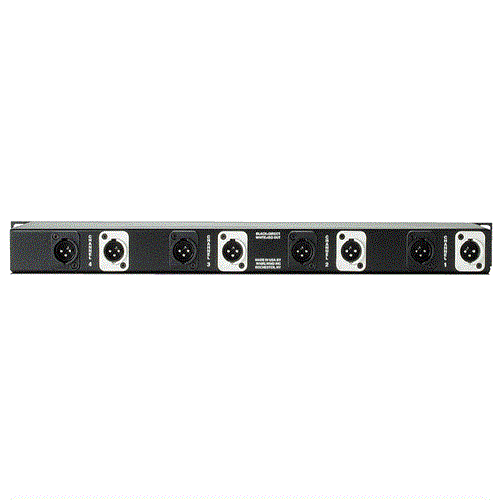 Each isolated output has a front panel ground lift switch. The inputs (female XLR) are located on the front panel and outputs (male XLR) are located on the rear panel.