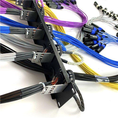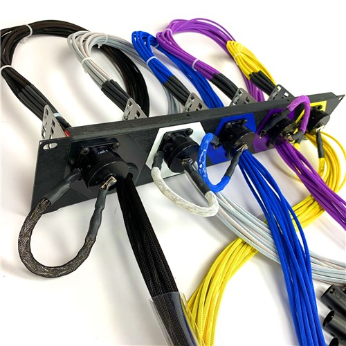The tails exit through grommets so they may be retracted into the panel. Tails can be dressed to length for a neat appearance and unused tails can be pushed back and out of the way.
