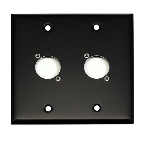 Whirlwind Wall Plate - 2 Gang Black Punched for 2 Neutrik XLRS