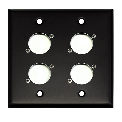 Whirlwind Wall Plate - 2 Gang Black Punched for 4 Whirlwind/Switchcraft D3F