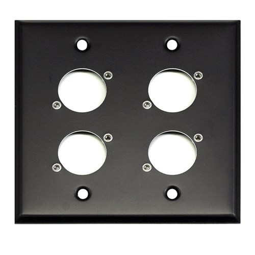 Whirlwind Wall Plate - 2 Gang Black Punched for 4 Neutrik XLRS