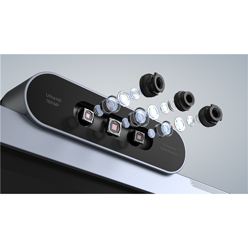 The MeetingBoard Pro has a built-in triple-camera system, each with 50MP resolution—one for wide-angle (1/1.56 Sony Sensor) and two for telephoto (1/2 Sony Sensor), ensuring high-resolution imaging across different focal lengths. The professional-grade lens delivers low grain, natural colors, and HD image quality. The IWB features a built-in automatic physical privacy shutter that blocks the camera when not in use, ensuring privacy protection for users. It also supports the external PTZ camera (MB-12X Pro) with optical zoom for long-distance tracking and 4K lossless zoom for close-ups.