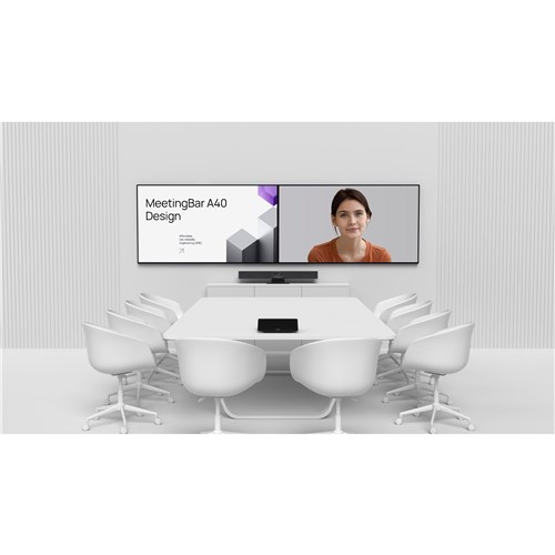 Yealink MeetingBar A40 is a next-generation all-in-one video bar that leverages industry-leading AI to enhance video and audio experience in daily hybrid meetings. It offers easy deployment and use, making it ideal for premium small and medium-sized meeting rooms.