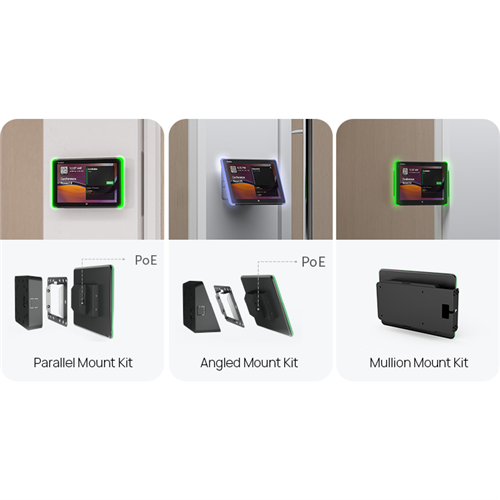Yealink RoomPanel E2 is an 8-inch all-in-one meeting room schedule panel that runs Android 13 and comes with full RGB programmable LED background illumination for immediately visible communication of room status. It includes multi-point touch capability, 802.11ac Wi-Fi, Bluetooth 5.0, a built-in NFC/RFID reader, enhanced microphone arrays and speakers to meet all modern workspace demands. Also equipped with a Power-over-Ethernet and various mounting brackets, Yealink RoomPanel E2 could be easily mounted on any surface.