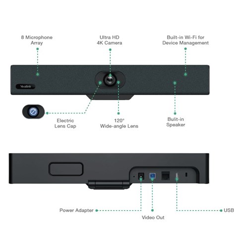 The Yealink UVC34 is a professional all-in-one USB video bar for small rooms and huddle rooms, compatible with almost every video conferencing service on the market today — including Microsoft Teams, Zoom, Google Meet, Cisco Webex, GoToMeeting and more.
